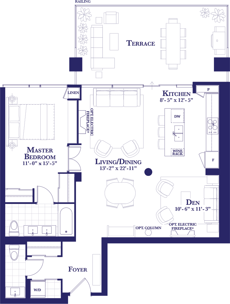 Prices, figures, illustrations, sizes, features and finishes are subject to change without notice. Areas and dimensions are approximate and actual usable floor space may vary from the stated area. Layout may be reverse of the unit purchased. E. & O.E. January, 2023