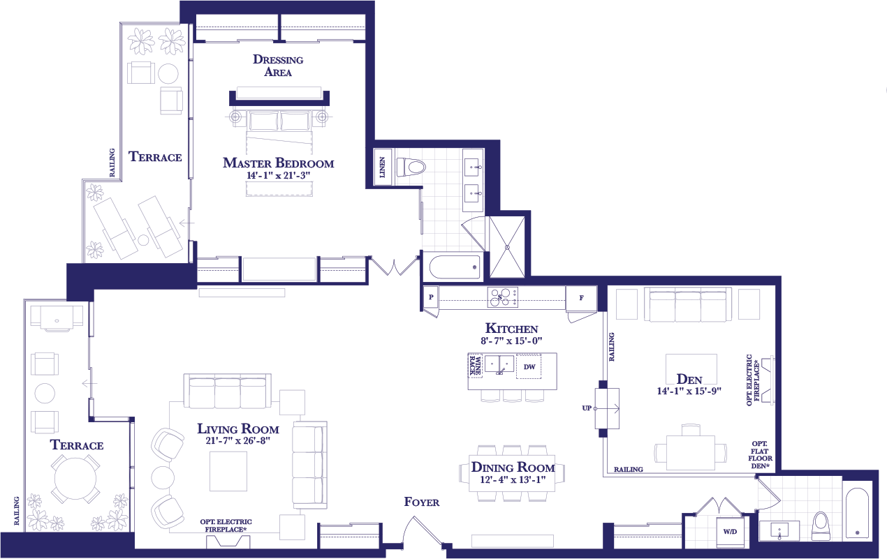 Prices, figures, illustrations, sizes, features and finishes are subject to change without notice. Areas and dimensions are approximate and actual usable floor space may vary from the stated area. Layout may be reverse of the unit purchased. E. & O.E. January, 2023