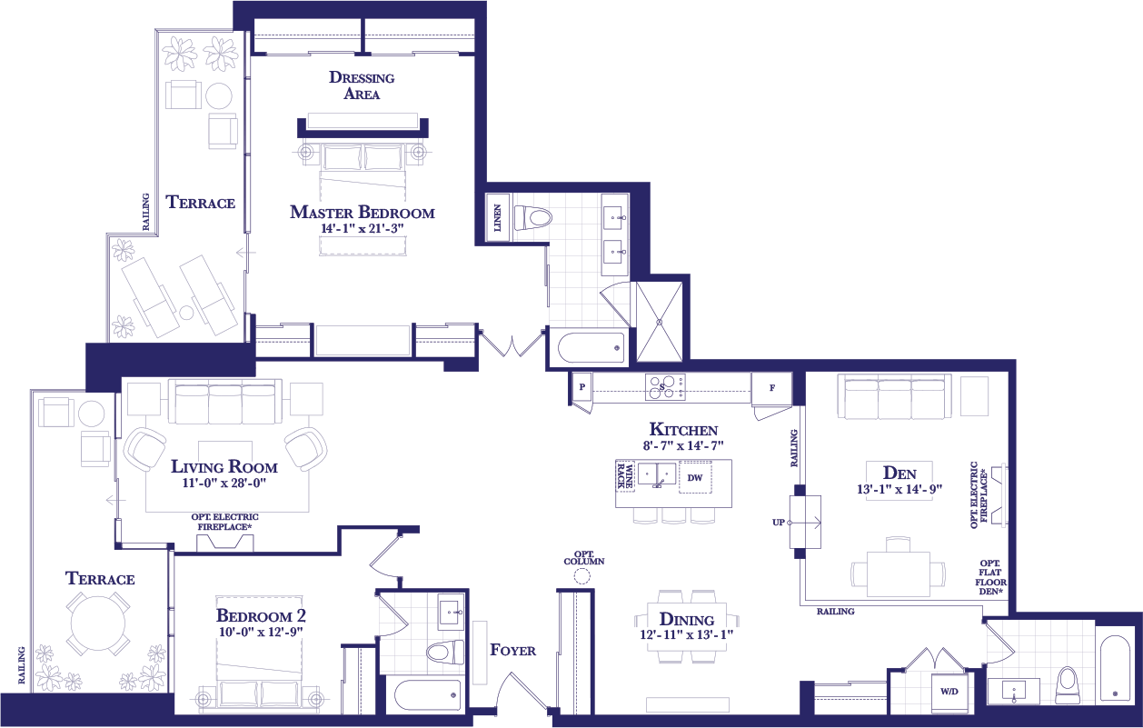 Prices, figures, illustrations, sizes, features and finishes are subject to change without notice. Areas and dimensions are approximate and actual usable floor space may vary from the stated area. Layout may be reverse of the unit purchased. E. & O.E. January, 2023