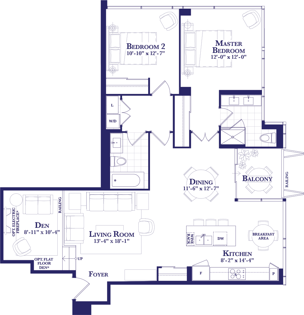 Prices, figures, illustrations, sizes, features and finishes are subject to change without notice. Areas and dimensions are approximate and actual usable floor space may vary from the stated area. Layout may be reverse of the unit purchased. E. & O.E. January, 2023