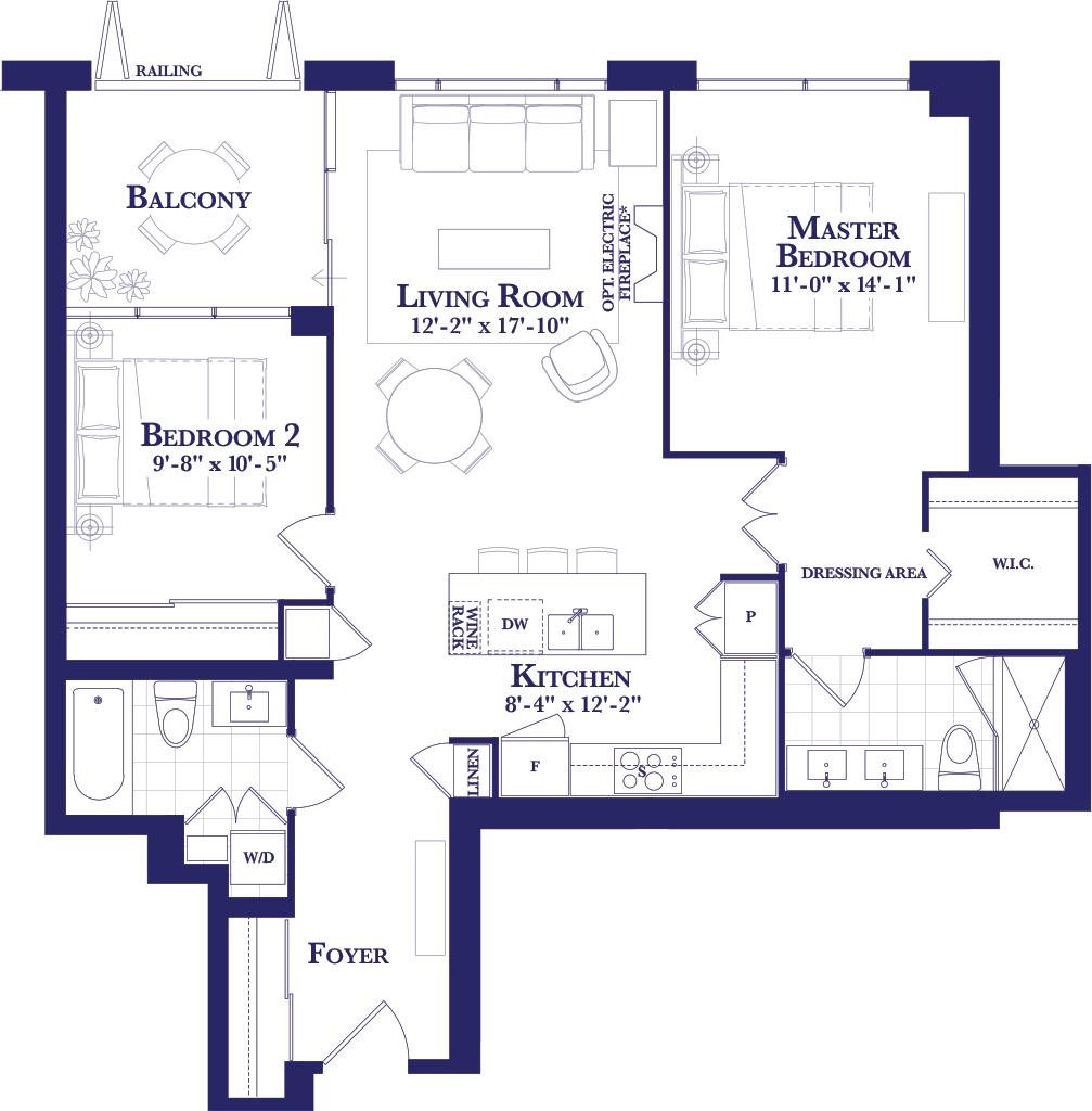 Prices, figures, illustrations, sizes, features and finishes are subject to change without notice. Areas and dimensions are approximate and actual usable floor space may vary from the stated area. Layout may be reverse of the unit purchased. E. & O.E. January, 2023