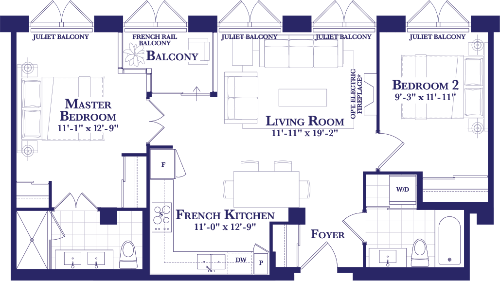 Prices, figures, illustrations, sizes, features and finishes are subject to change without notice. Areas and dimensions are approximate and actual usable floor space may vary from the stated area. Layout may be reverse of the unit purchased. E. & O.E. January, 2023