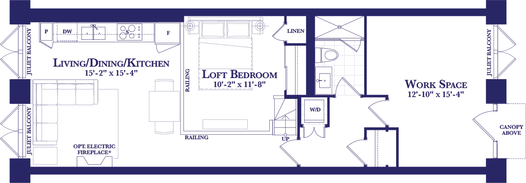 LIVE SPACE: 585 sq. ft. / WORK SPACE: 197 sq. ft.
